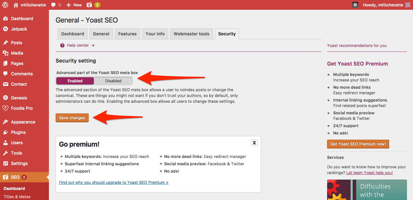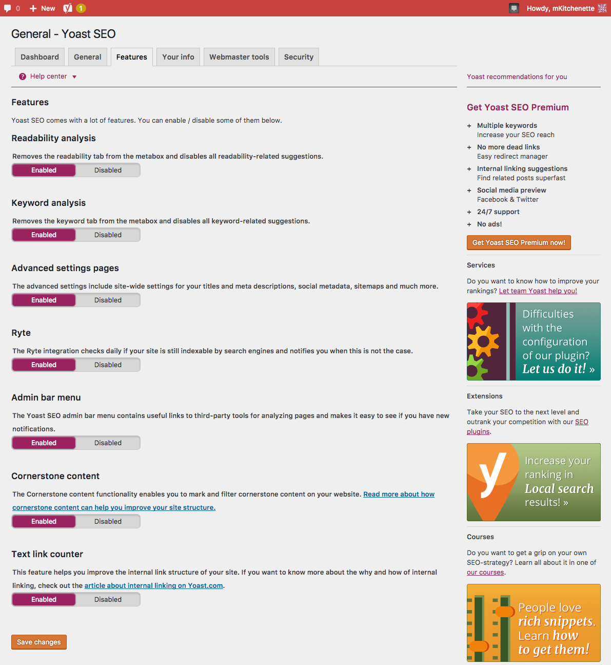 Enable advanced part of the Yoast SEO plugin as it gives you more control over your WordPress site’s SEO.