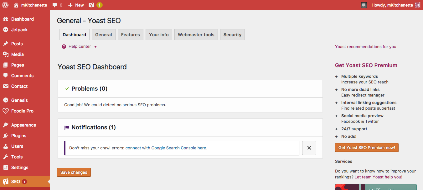1.4. Yoast SEO Dashboard – Webmaster Tools