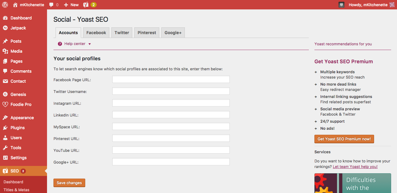 Enter your social media profiles so that search engines will associate it with your WordPress site.