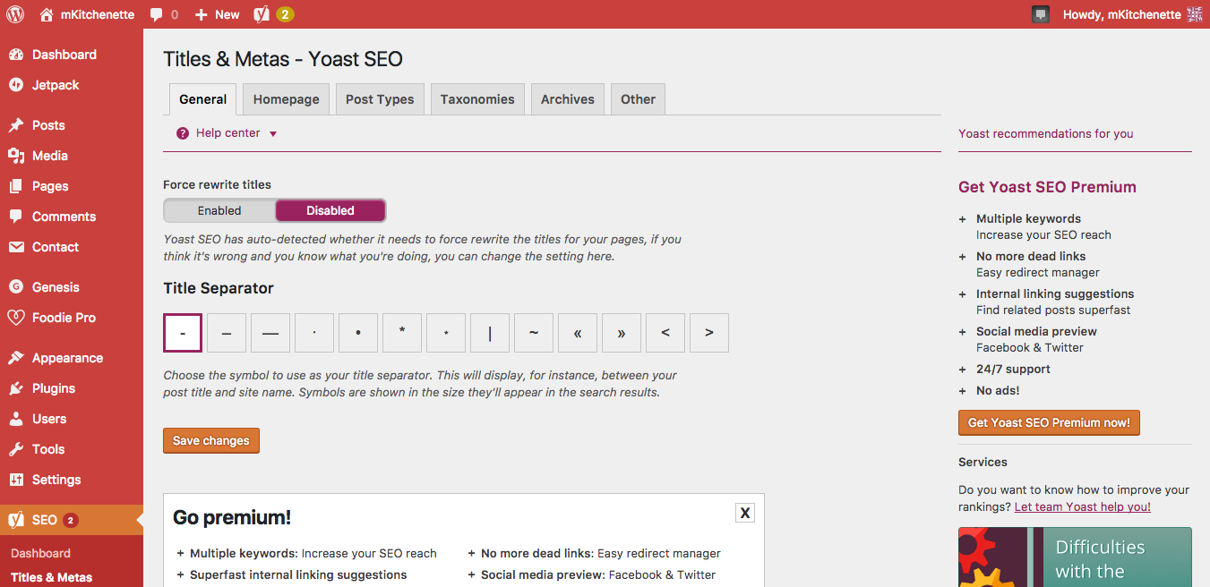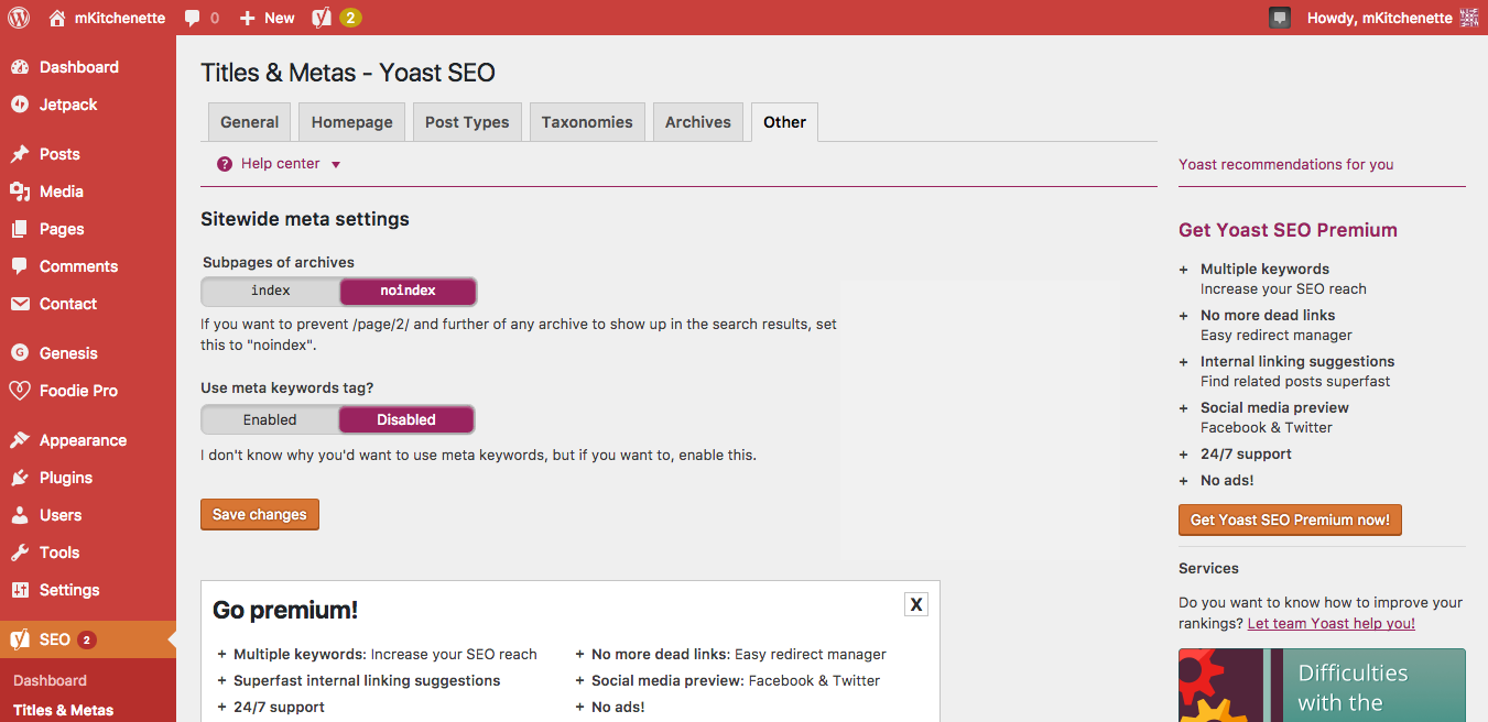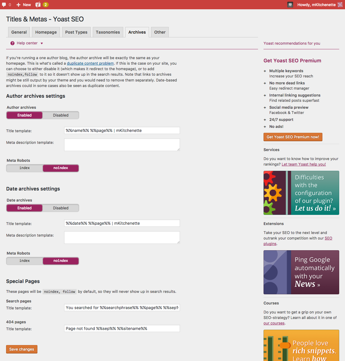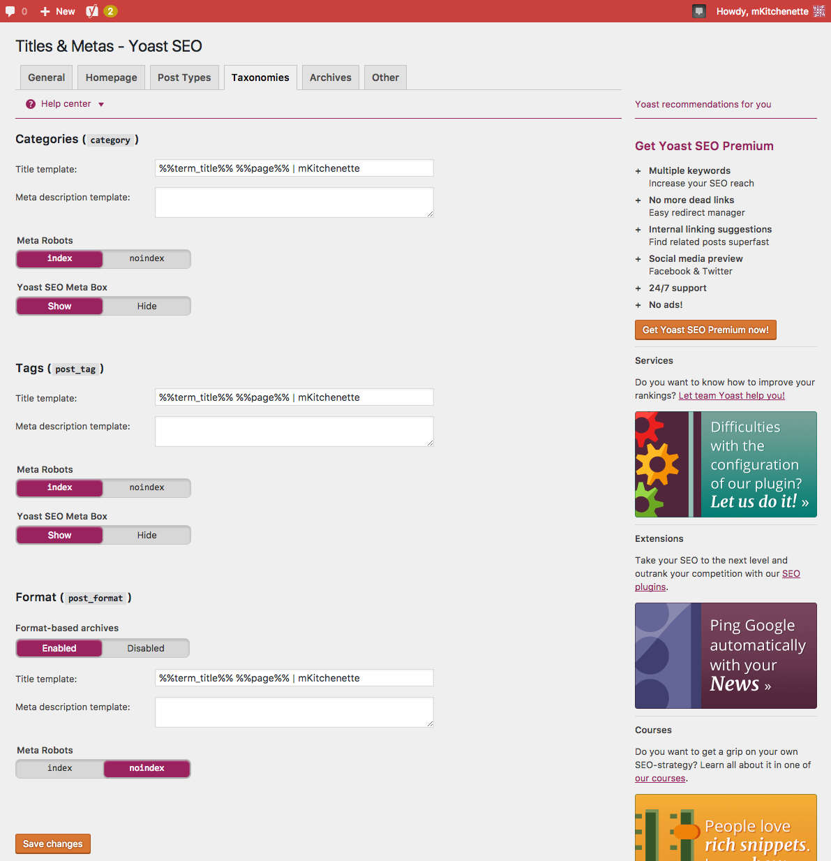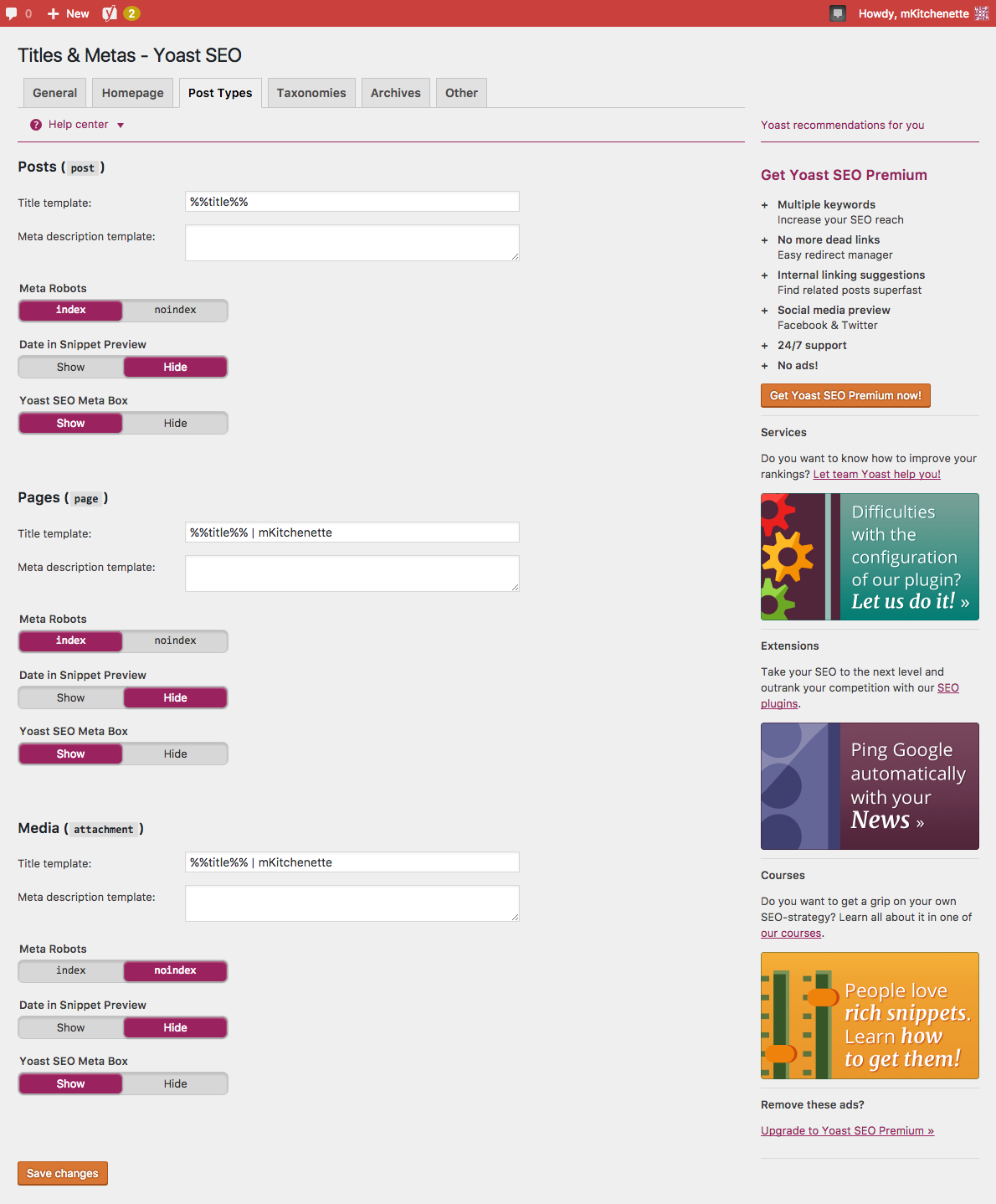 Yoast SEO Titles & Metas option lets you customize the titles, meta description, and indexing option of your WordPress pages and posts and archives (categories, tags, media, author, date).