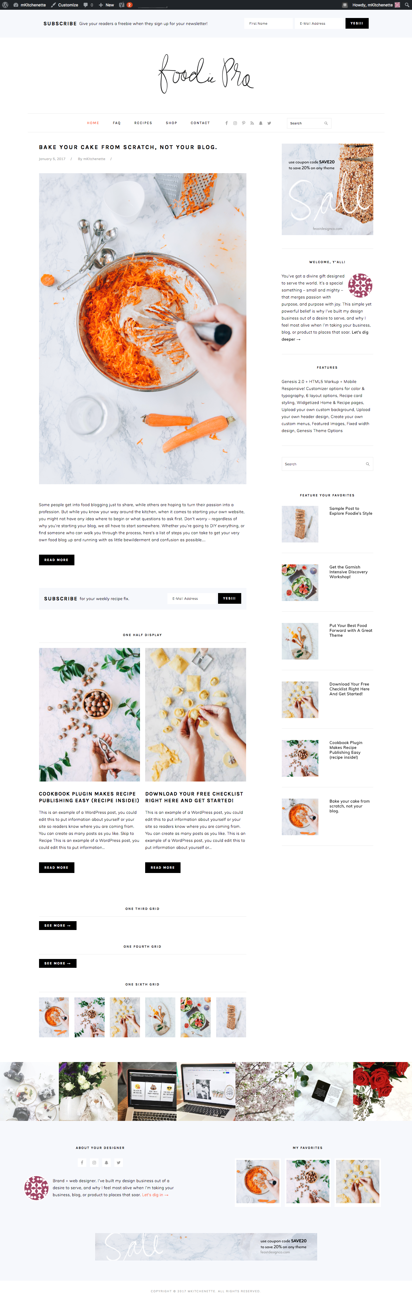 Here’s the final preview of mKitchenette (homepage, sample page, and contact page) after: